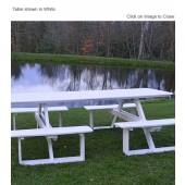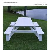 Poly Picnic Tables are hand made and constructed with thick HDPE poly material. Hardware is stainless steel.