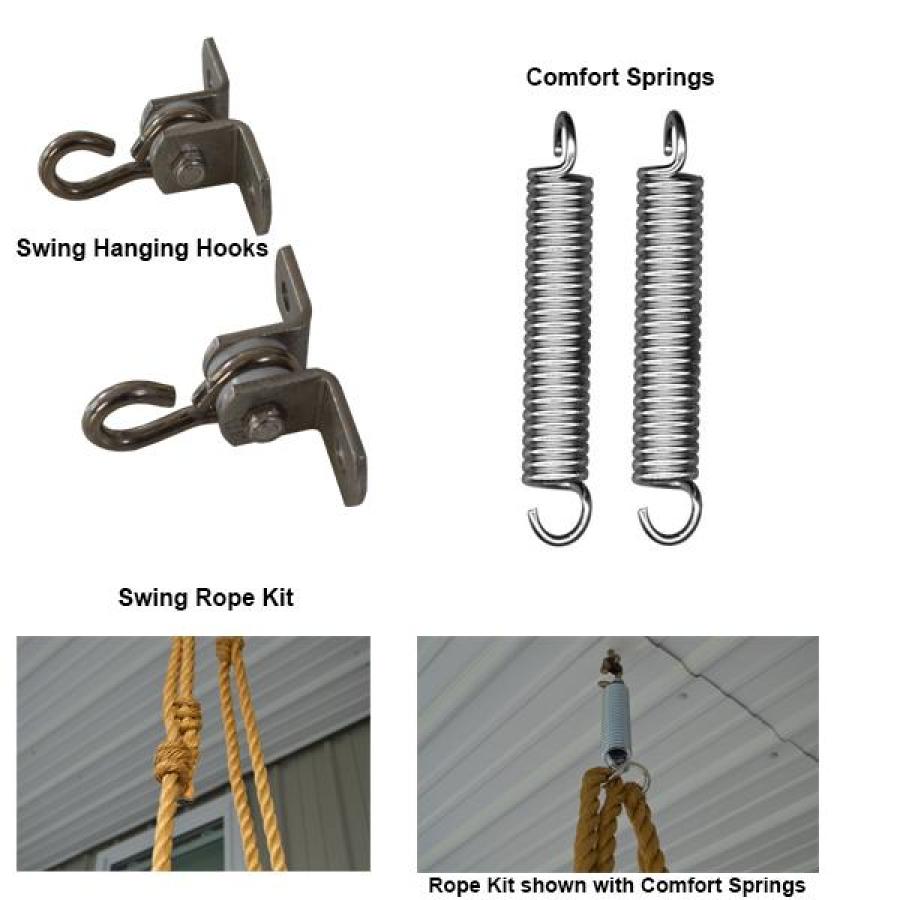 Options: Fourteen Solid Poly Colors and Natural Woodgrain Poly at NO extra charge! 4 foot and 5 foot, 14 Sundown Agora fabric cushion fabric colors. Optional 8" Comfort Springs, Hanging Hooks and rope kit are available.