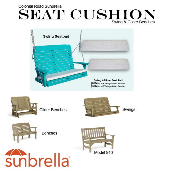 This Seat Cushion will fit the following Colonial Road Bench, Glider & Swing Furniture