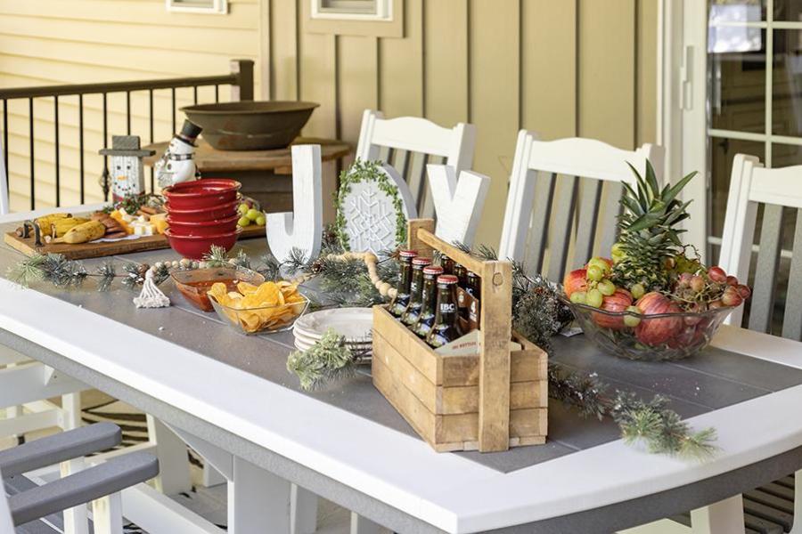Poly Concepts 9 Piece Traditional Dining Set This beautiful elegant oversized dining set offers traditional style and ideal for any outdoor space. Hand built in Amish country the roomy 8 foot dining table can host up to 8 guests. Matched with 8 M-Series Dining arm chairs This set arrives fully assembled and ready to entertain! Dining table has a 2" extra thick table apron with optional two-tone solid poly colors.